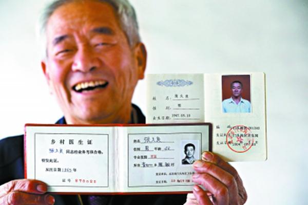 圖為從1965年成為赤腳醫(yī)生至今,張久良已經(jīng)從醫(yī)整整50年。 圖片來(lái)源:北京日?qǐng)?bào)