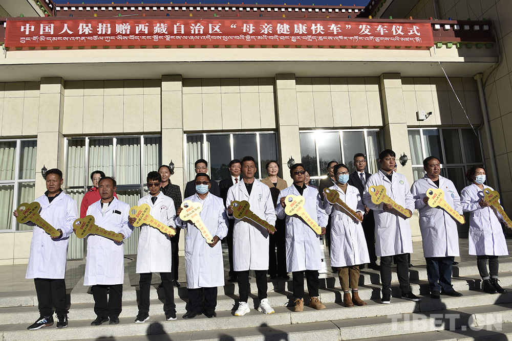 圖為阿里地區(qū)札達(dá)縣人民醫(yī)院等10家醫(yī)院獲得“母親健康快車”鑰匙攝影:王媛媛