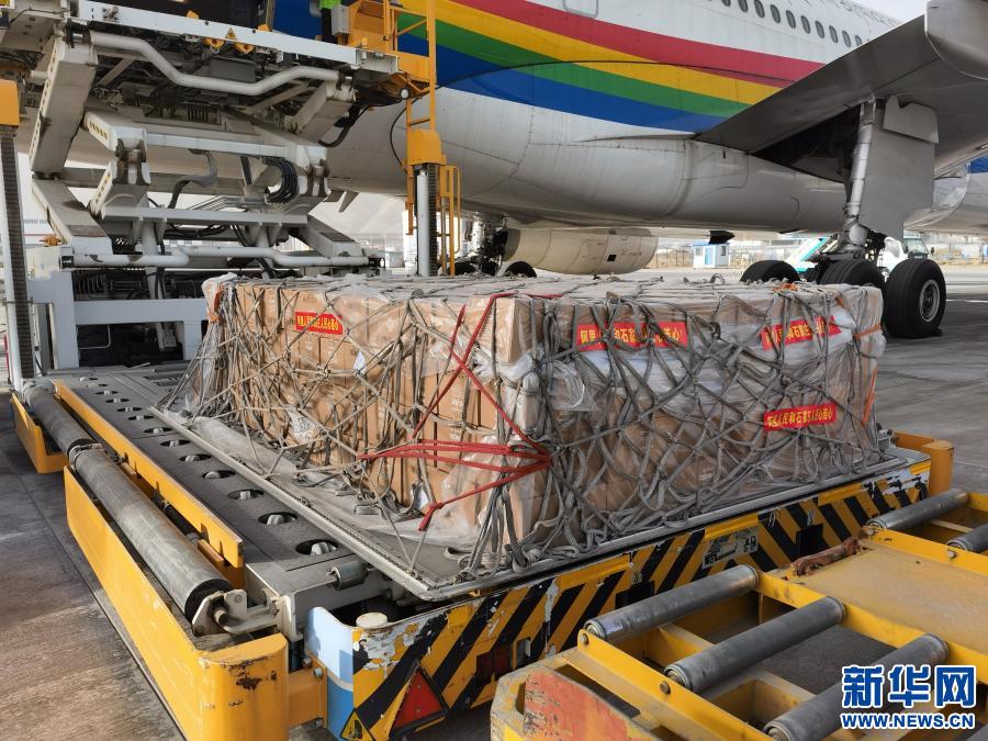 這是1月12日在拉薩貢嘎國際機場拍攝的西藏阿里向河北捐贈的抗疫物資。新華社發(fā)(王佳豪 攝)