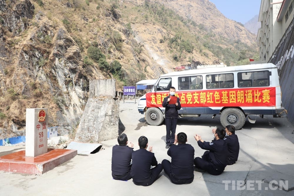 中國西藏網(wǎng)訊 為提升完善四強(qiáng)黨支部建設(shè),豐富一線執(zhí)勤民警文化生活,1月27日,西藏自治區(qū)聶拉木出入境邊防檢查站友誼橋執(zhí)勤點(diǎn)在53號(hào)界碑旁舉行紅色基因朗誦比賽,為中國共產(chǎn)黨百年華誕獻(xiàn)禮。
