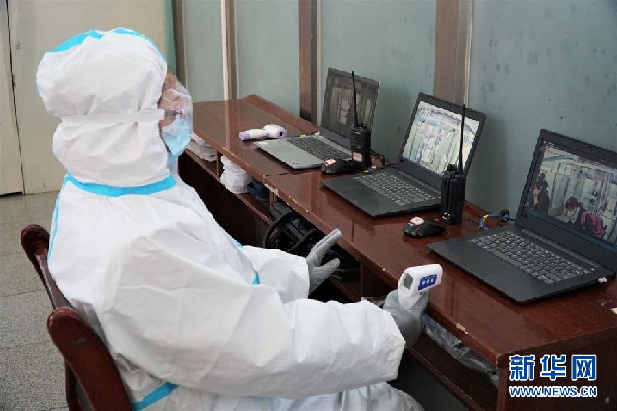 1月28日,西寧火車站工作人員身著防護服監(jiān)測進站旅客體溫情況。新華社記者 嚴賦憬 攝