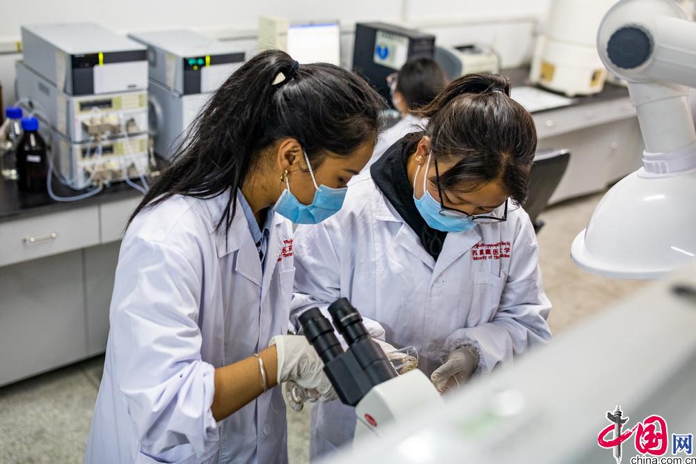 西藏藏醫(yī)藥大學(xué)目前擁有校內(nèi)實(shí)訓(xùn)室24個(gè)、附屬醫(yī)院1家,校外藏藥采認(rèn)藥實(shí)踐實(shí)訓(xùn)基地2個(gè)、非直屬附屬醫(yī)院2家、教學(xué)醫(yī)院7家、實(shí)習(xí)醫(yī)院11家、教學(xué)藥廠2家、實(shí)習(xí)藥廠1家,同時(shí)還擁有國(guó)家中醫(yī)藥管理局藏醫(yī)藥繼續(xù)教育培訓(xùn)基地、中醫(yī)藥優(yōu)勢(shì)特色教育(藏藥)培訓(xùn)基地和中央與地方共建藏醫(yī)特色療法實(shí)踐基地等重要教學(xué)基地。圖為學(xué)校學(xué)生在實(shí)驗(yàn)室中進(jìn)行藥物試驗(yàn)。中國(guó)網(wǎng)記者 鄭亮攝