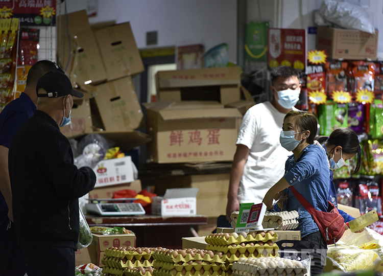 圖為8月9日,市民在拉薩柳梧農(nóng)貿(mào)市場(chǎng)購(gòu)買雞蛋 攝影:王媛媛