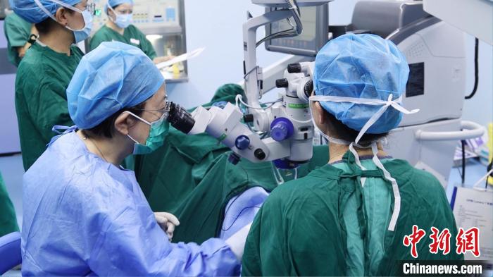 黎曉新總院長為西藏區(qū)醫(yī)生開展手術(shù)帶教?!B門眼科中心供圖