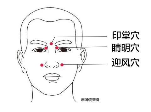 從迎香穴推到內(nèi)眼角的睛明穴,對(duì)迎風(fēng)流淚、無(wú)風(fēng)也流淚的淚道不暢,效果十分顯著;并對(duì)早期的真假性近視、老花眼、玻璃體混濁、白內(nèi)障、青光眼等導(dǎo)致的視力模糊效果也不錯(cuò)。繼續(xù)推到印堂穴,這樣做會(huì)防治由眼疾、鼻疾引起的前頭痛、額竇炎。