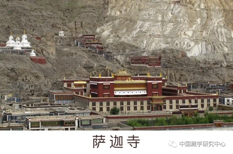 薩迦派,“薩迦”藏語意為“灰白色的土地”,同時(shí)因該派寺院圍墻涂有象征文殊、觀音、金剛手菩薩的紅、白、藍(lán)三色花條而被俗稱為“花教”。1073年,后藏的昆·貢卻杰布(1034-1102)在薩迦地方建立薩迦寺,從此逐漸形成薩迦派。該派獨(dú)特的密法傳承為道果教授。