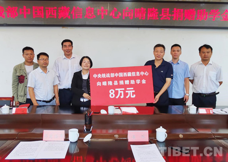 圖為公保主任代表中國(guó)西藏信息中心向晴隆縣捐贈(zèng)助學(xué)金8萬(wàn)元