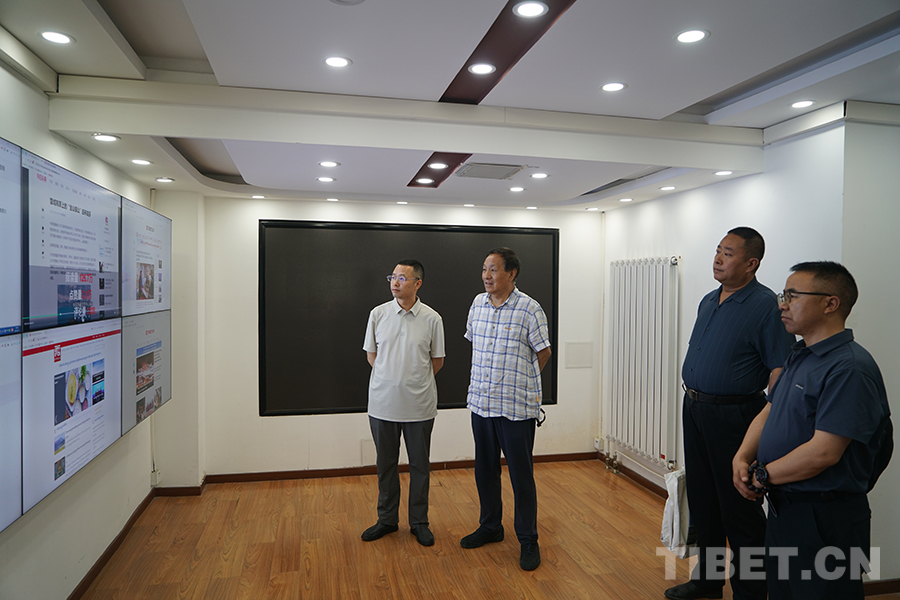 圖為三江源生態(tài)保護基金會一行觀看中國西藏信息中心宣傳片 攝影:陳浩力