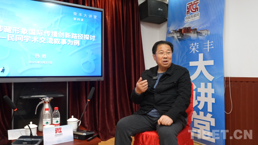 3月27日,四川師范大學教授、博士生導師孫勇應(yīng)邀做客中國西藏信息中心“榮豐大講堂”,圍繞《新時代涉藏形象國際傳播創(chuàng)新路徑探討——以跨國民間學術(shù)交流敘事為例》主題作專題報告,為提升涉藏國際傳播效能提供理論支持與實踐路徑。