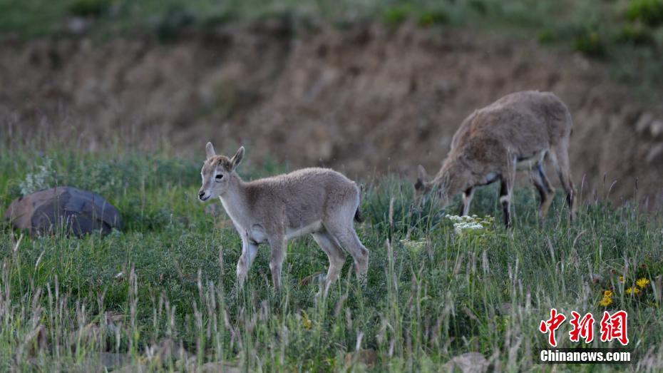 9月2日,西藏山南羊卓雍錯(cuò)湖畔,一只小藏原羚和同伴一起出來覓食。西藏近年來不斷加大環(huán)保力度,當(dāng)?shù)丨h(huán)境日益趨好,野生動物種群逐漸恢復(fù)。中新社記者 江飛波 攝