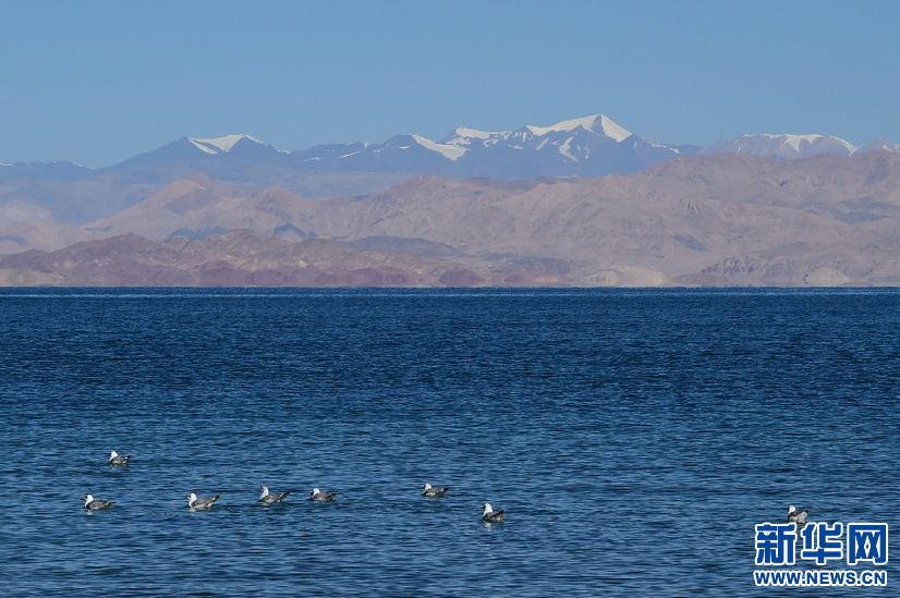 游弋在班公湖中的鳥兒(10月19日攝)。新華網(wǎng) 張宸攝