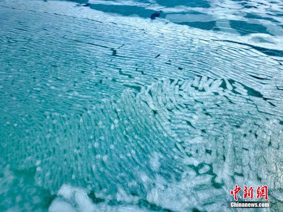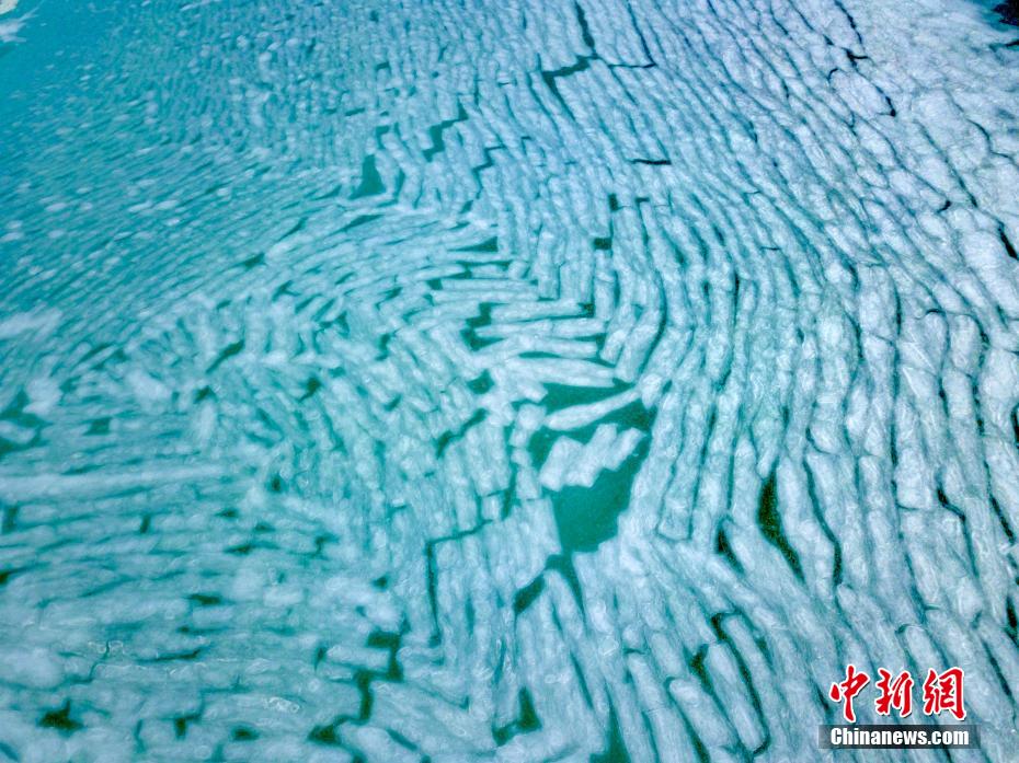 1月31日,攝影師在使用無人機(jī)航拍麻米湖時(shí)發(fā)現(xiàn),部分湖冰凍裂成“指紋狀”,十分神奇、壯觀。圖為麻米湖凍成了“指紋狀”。 曹枝清 攝