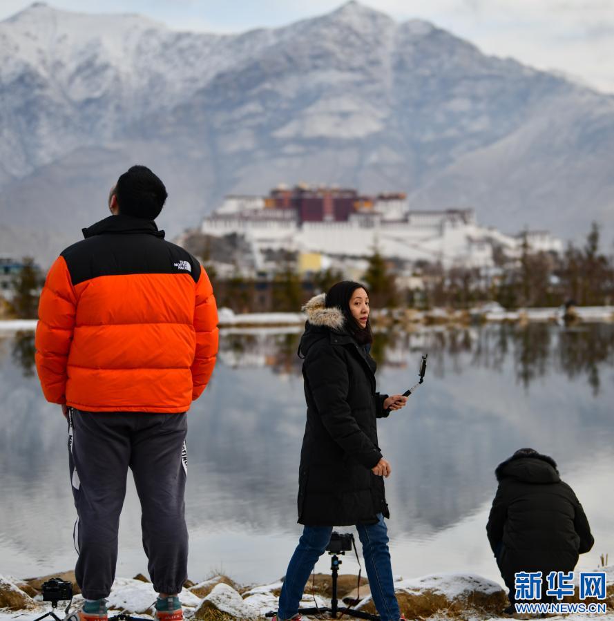 2月11日,幾名攝影愛(ài)好者在拉薩南山公園拍攝雪景。新華社記者 晉美多吉 攝