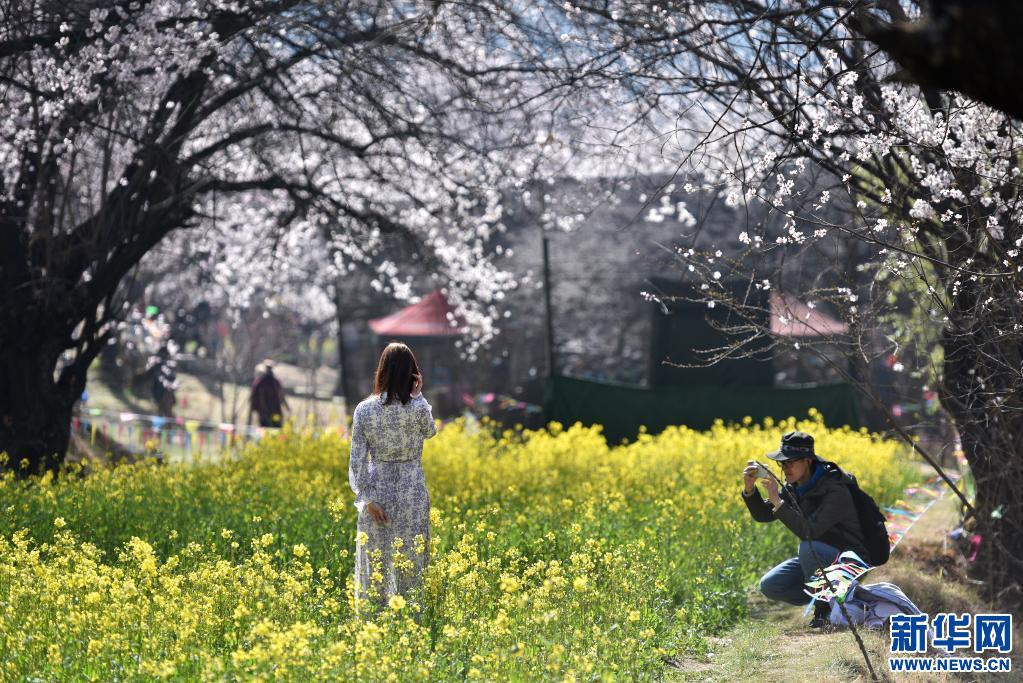 3月27日,游客在林芝市嘎拉村欣賞桃花時(shí)留影。新華社記者 孫瑞博 攝