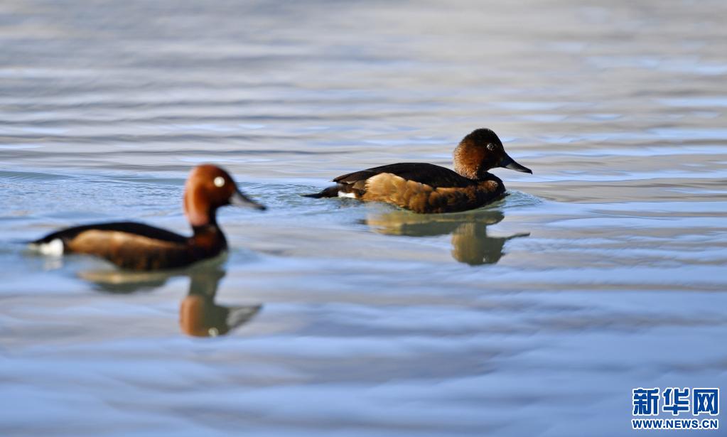 夏日里,鳳頭 和小 在西藏拉薩拉魯濕地國家級(jí)自然保護(hù)區(qū)水面上嬉戲。