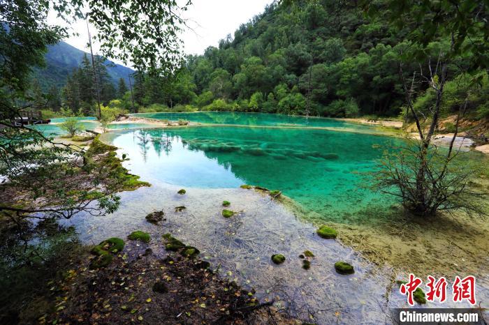 嫩恩桑措景區(qū)位于四川省阿壩藏族羌族自治州九寨溝縣漳扎鎮(zhèn)和大錄鄉(xiāng),藏語“嫩恩桑措”意為仙女沐浴的地方。景區(qū)總面積為200平方公里,擁有高山喀斯特地貌發(fā)育完好的鈣化景觀及原始森林自然風(fēng)片區(qū),被譽為鑲嵌在九寨溝縣的另一顆明珠。圖為8月23日,嫩恩桑措景區(qū)風(fēng)光。中新社記者 王磊 攝