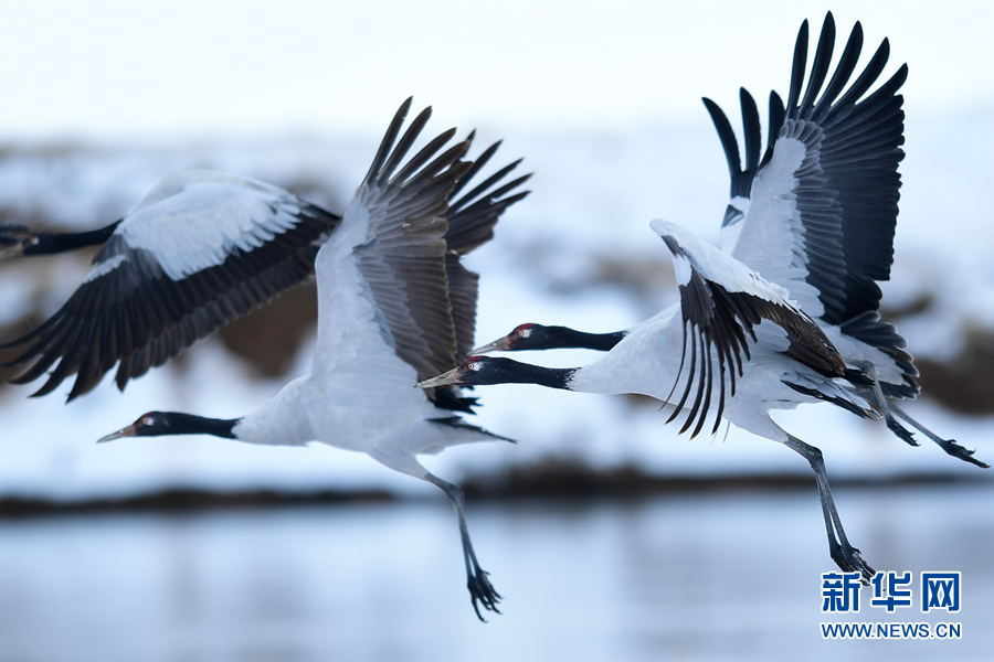 10月21日在三江源國(guó)家公園黃河源園區(qū)內(nèi)拍攝的黑頸鶴。新華社記者 張龍 攝