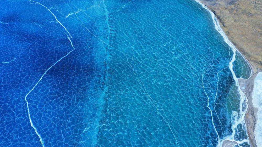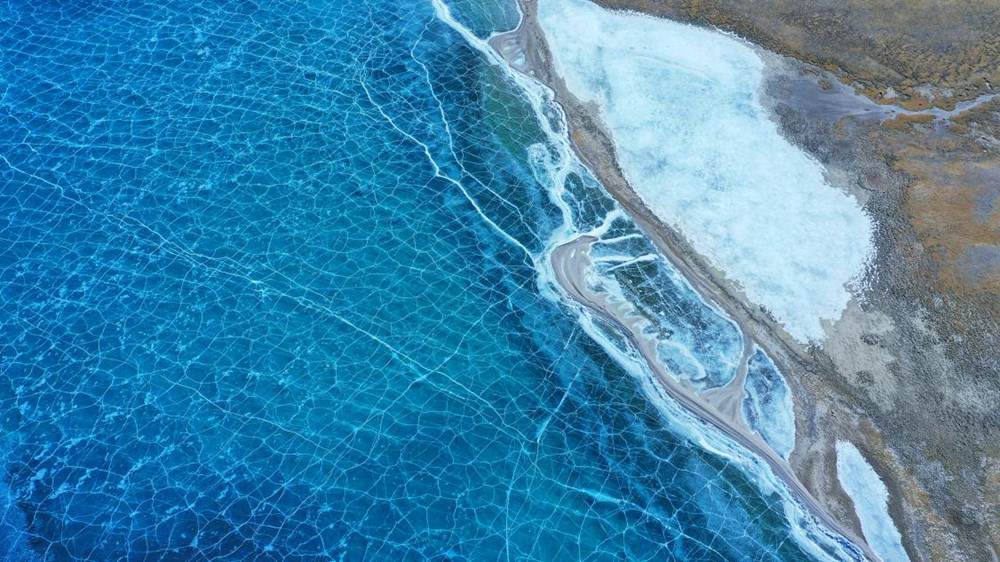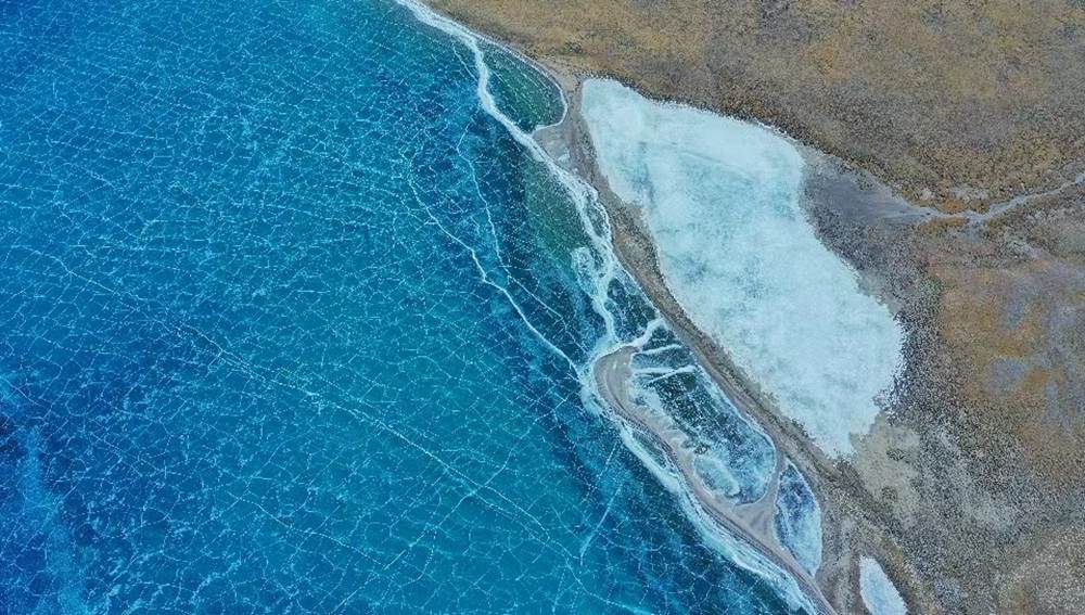 位于西藏山南市洛扎縣和浪卡子縣交界處的普莫雍錯,是喜馬拉雅山脈間的一個咸水湖,湖面海拔5070m。冬季的普莫雍錯湖面會結(jié)冰,冰面通透可見湖底,在陽光的照射下,呈現(xiàn)出動人心魄的藍(lán)。