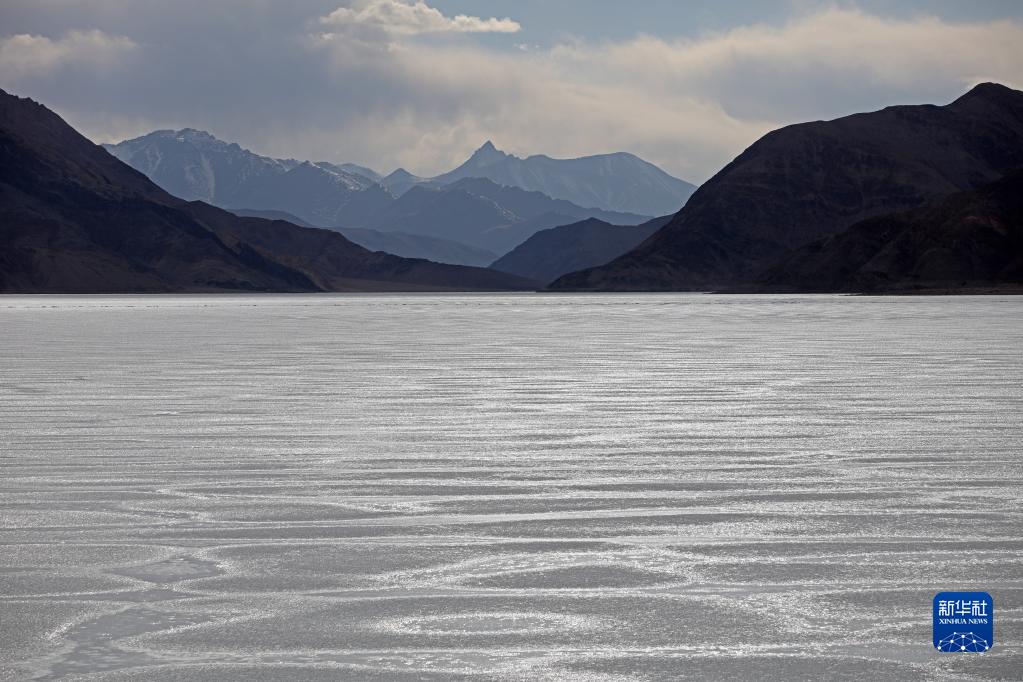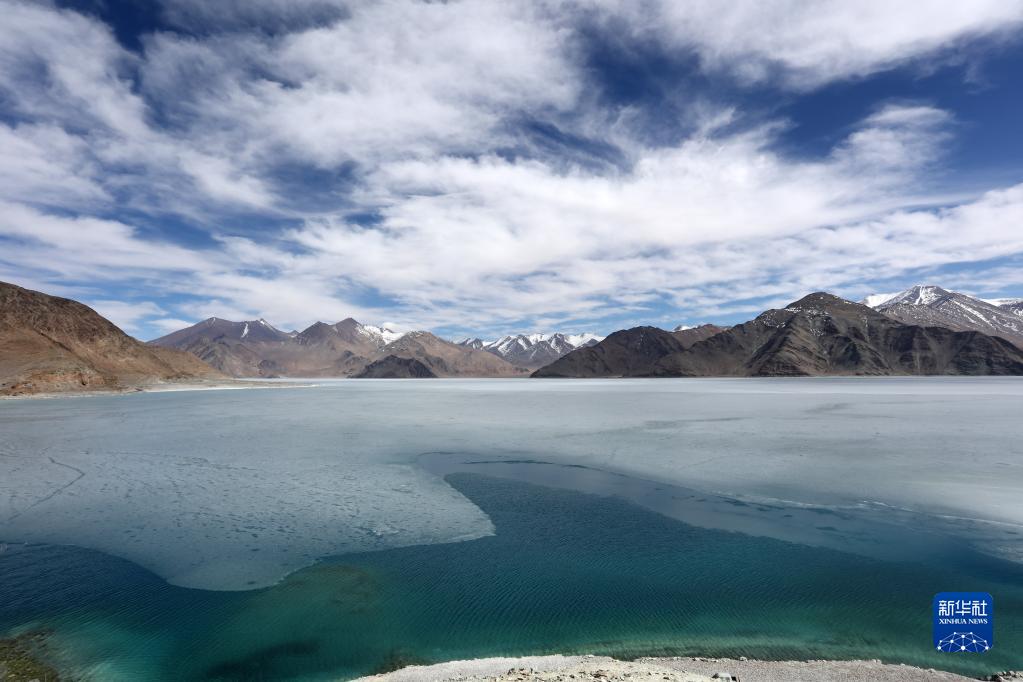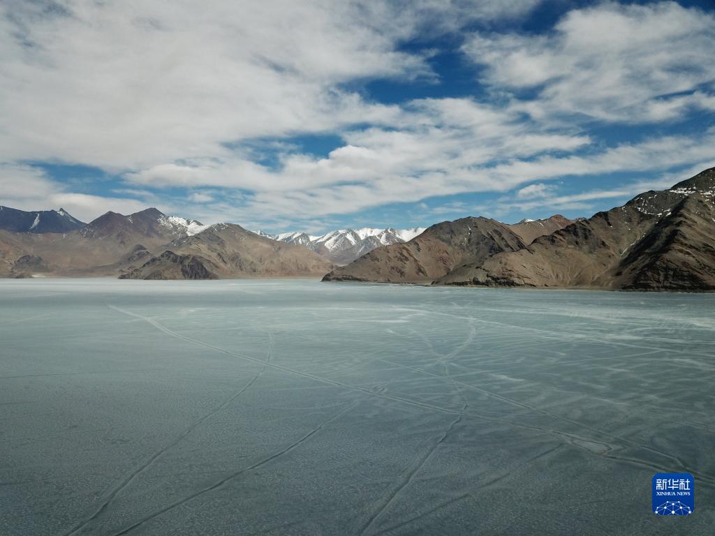 這是4月9日拍攝的班公湖冰面。由于湖體狹長,部分湖面仍未解凍。新華社記者 姜帆 攝