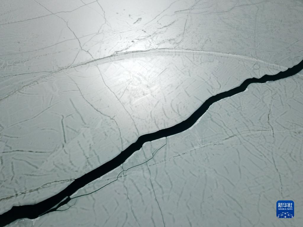 這是4月5日拍攝的班公湖冰面(無人機(jī)照片)。由于湖體狹長,部分湖面仍未解凍。新華社記者 姜帆 攝