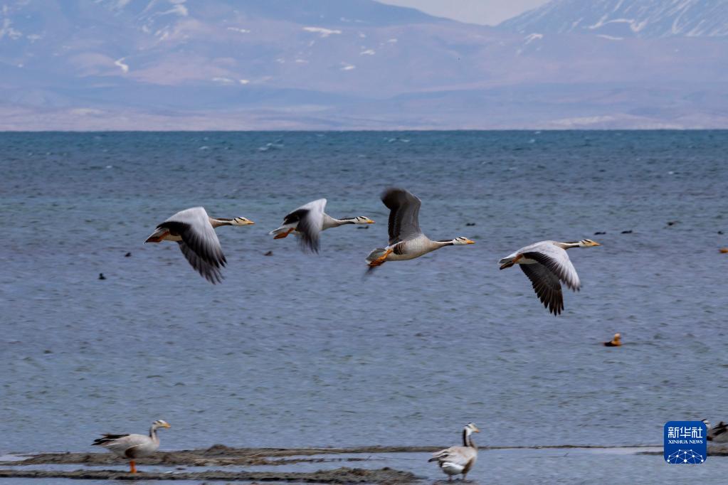 這是無人機(jī)拍攝的然烏湖(4月24日攝)。新華社記者 晉美多吉 攝