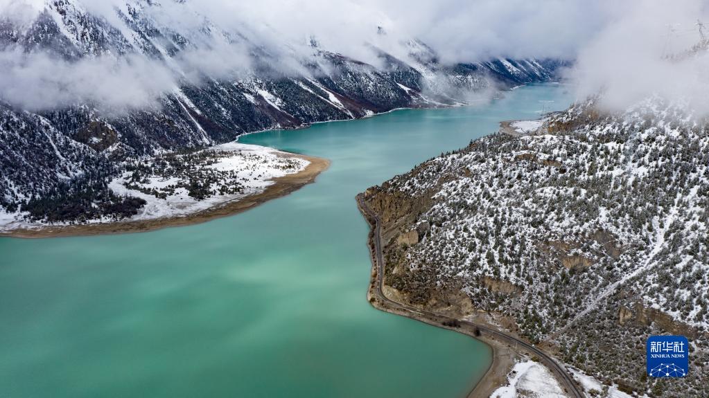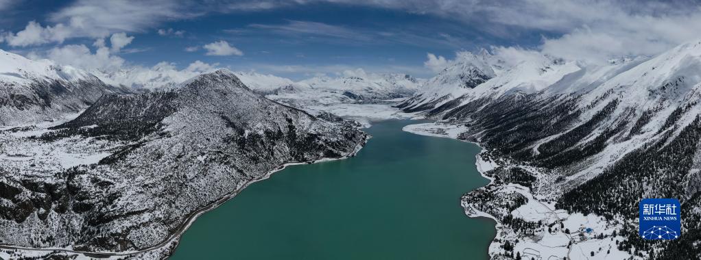 這是無人機(jī)拍攝的然烏湖(4月18日攝)。新華社記者 孫非 攝