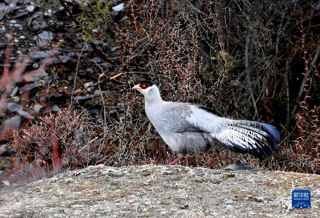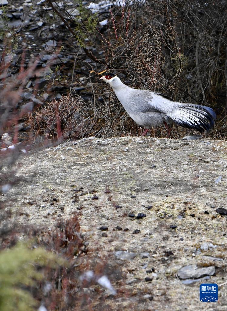 5月3日在西藏自治區(qū)比如縣拍攝的白馬雞。新華社記者 張汝鋒 攝