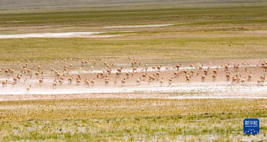 這是在羌塘國家級自然保護區(qū)內(nèi)拍攝的藏羚羊(7月11日攝)。新華社記者 周荻瀟 攝