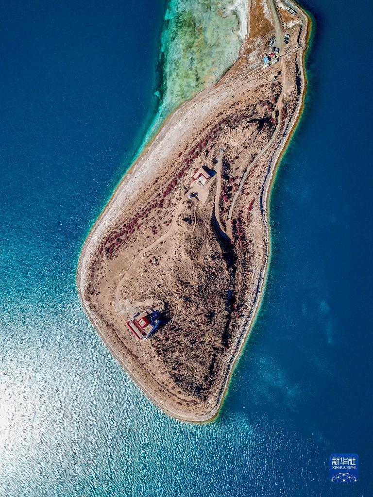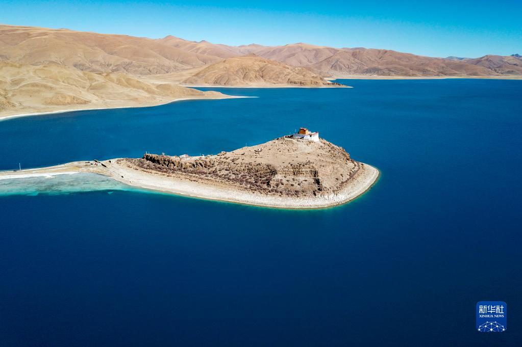 坐落于羊湖北岸一座半島上的日托寺(無人機照片,12月11日攝)。新華社記者 姜帆