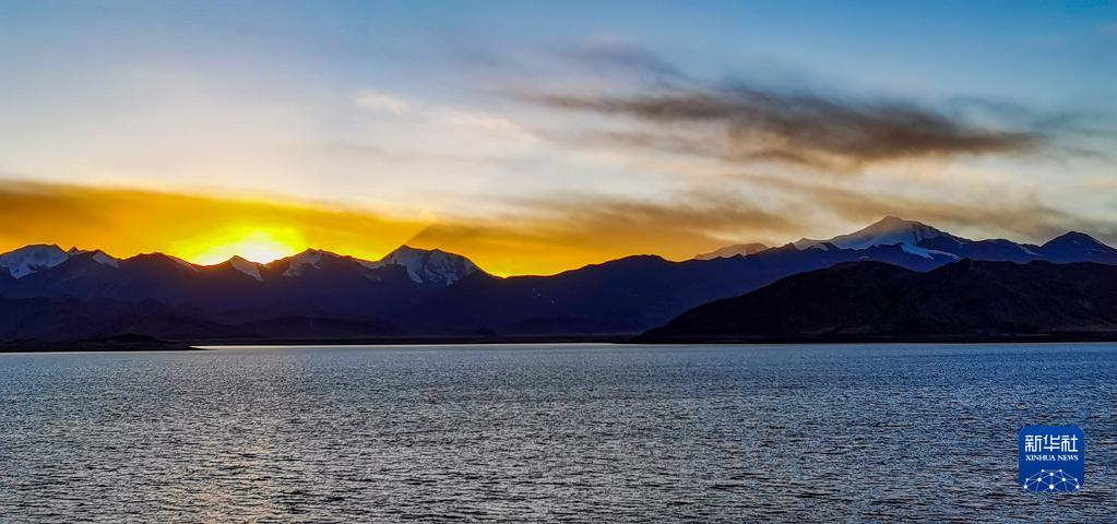 這是夕陽下的羊卓雍錯(1月1日攝)。新華社記者 姜帆 攝