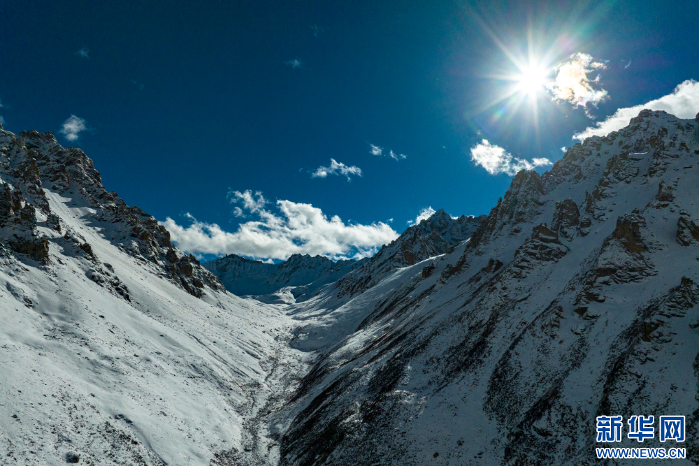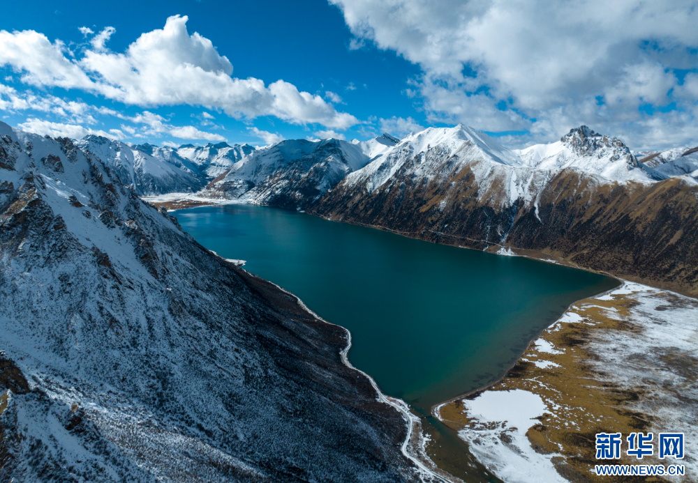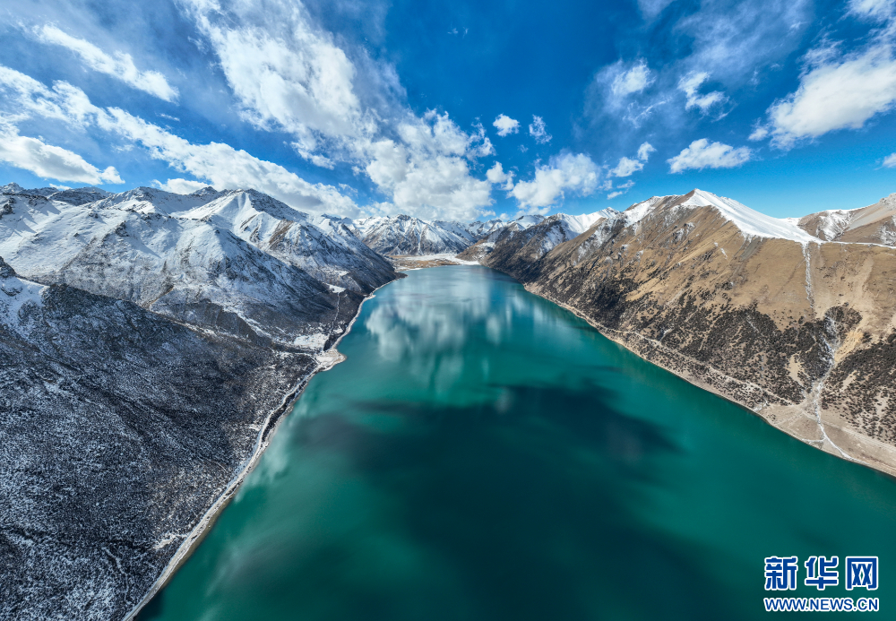 12月10日,從嘉乃玉錯湖邊拍攝的雪山(無人機照片)。新華網 旦增努布 攝