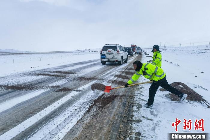 1月18日,環(huán)衛(wèi)工人在清理拉薩街道上的積雪。新華社記者 張汝鋒 攝