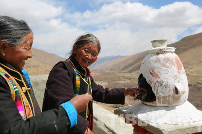 圖為姐妹倆在煨桑,祈求人畜興旺
