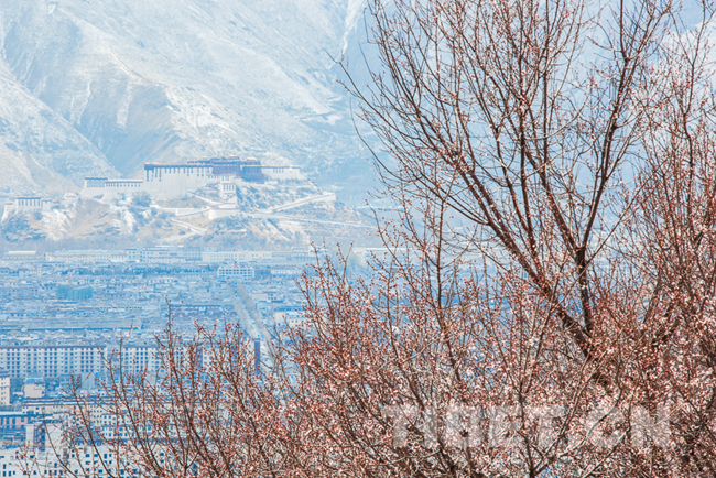 圖為從拉薩市北郊山坡上的帕崩崗遠(yuǎn)眺布達(dá)拉宮。