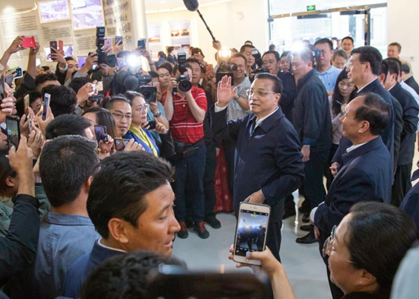 圖為李克強總理來到位于拉薩市柳梧新區(qū)的“柳梧蜂巢+創(chuàng)新中心” 圖片來源:中國政府網(wǎng)