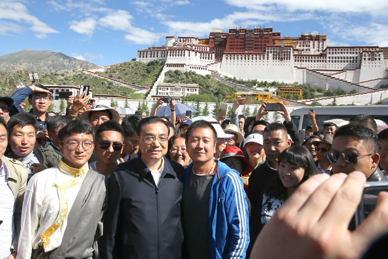 圖為李克強在布達拉宮廣場。圖片來源:中國政府網(wǎng)