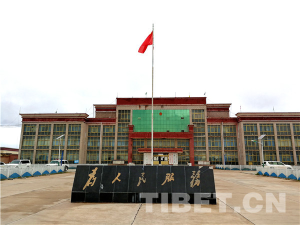 雙湖縣正式成立于2013年,總面積有11.67萬平方公里,占地比浙江省還大,是全國第三個面積大縣,而人口只有1萬多。圖為雙湖縣縣委縣政府門前紅旗飄揚。