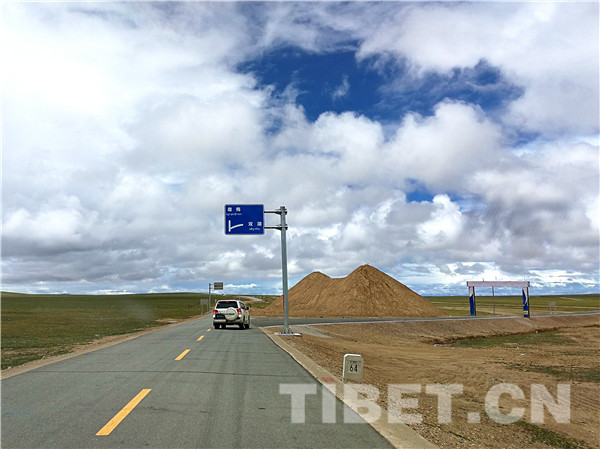 為了生存,他們克服了重重困難,終于扎下根來,創(chuàng)造了了不起的業(yè)績。圖為通向雙湖縣路口,馬路平坦,連接天際。