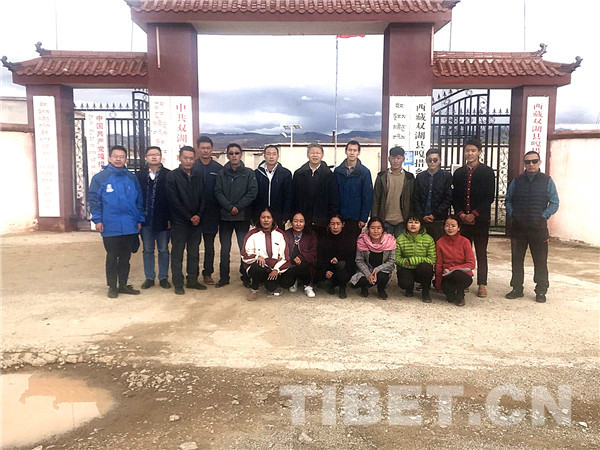 初步考慮,將在未來實施幾百戶、上千人的移民搬遷,先把老人和孩子遷移到海拔低一些的地方。圖為作者和調(diào)研組同志與雙湖縣嗄措鄉(xiāng)干部合影。