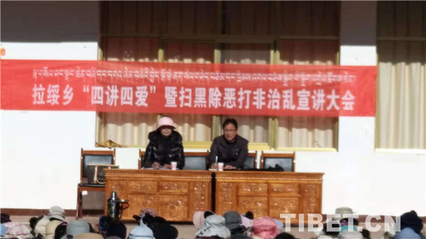 圖為在藏木點(diǎn)召開“四講四愛”暨掃黑除惡打非治亂宣講大會。
