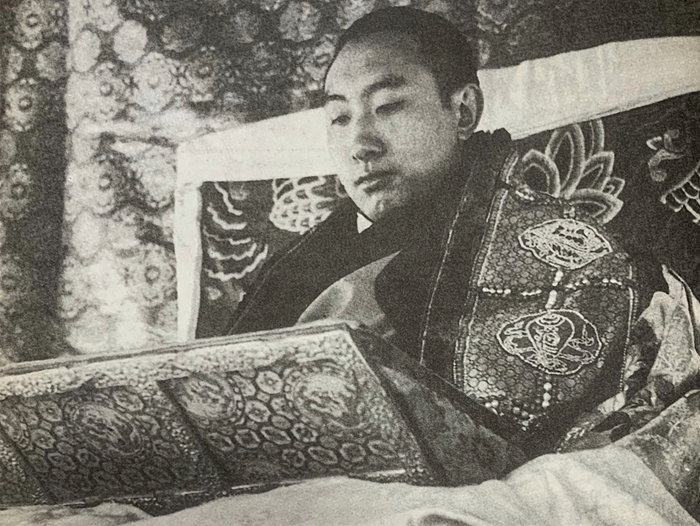 圖為十世班禪高坐扎什倫布寺法臺上講經(jīng)。(陳宗烈攝于一九五七年)