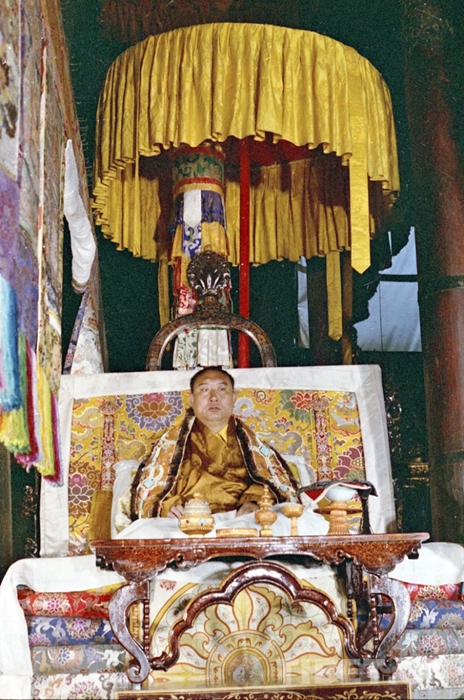 十世班禪大師在大昭寺朝拜釋迦牟尼佛,1982年。劉麗嘉攝
