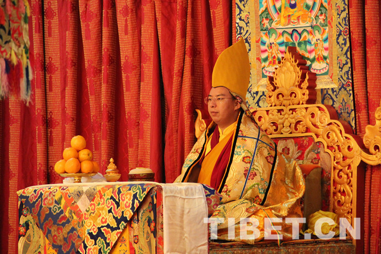 圖為十一世班禪領(lǐng)誦經(jīng)文。
