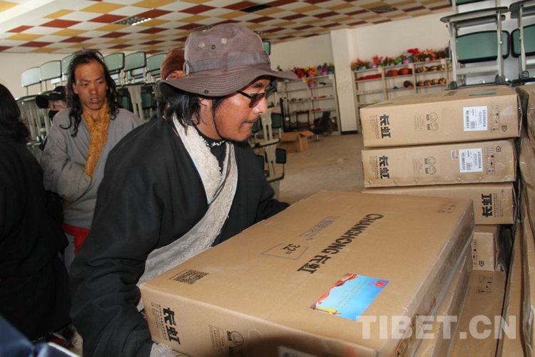 現(xiàn)場,6戶貧困戶代表上臺領(lǐng)取了電視機。嶄新的長虹液晶電視捧在手上,農(nóng)牧民群眾個個滿臉掛著燦爛的笑容?!艾F(xiàn)在路也好了、電也通了,又給我們發(fā)電視機,我們從心底感謝黨中央啊!”濯桑鄉(xiāng)受贈群眾代表多吉用藏語感激地說。