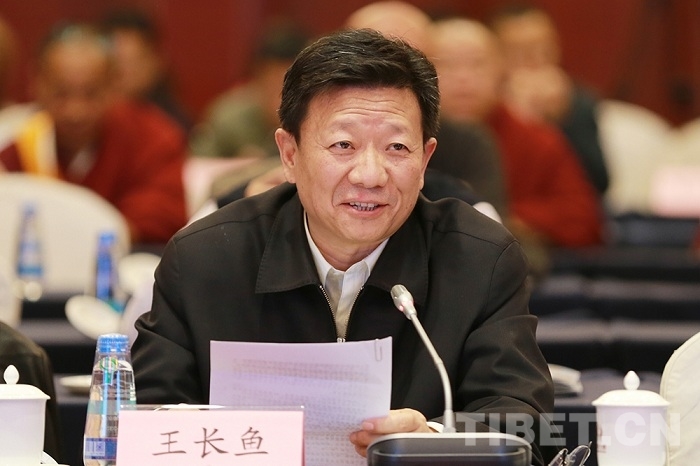 圖為中國(guó)藏語(yǔ)系高級(jí)佛學(xué)院黨組書記、常務(wù)副院長(zhǎng)王長(zhǎng)魚出席《中國(guó)西藏》雜志創(chuàng)刊30周年、中國(guó)西藏網(wǎng)創(chuàng)辦20周年座談會(huì)并致詞 攝影:許娜