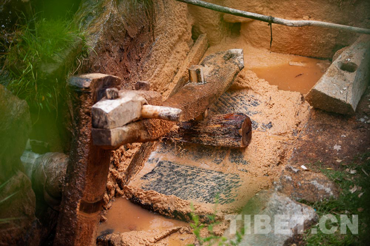 圖為吞達村藏香制作園內正在研磨的水磨 攝影:趙耀