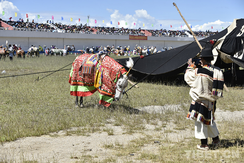 8月12日上午,西藏自治區(qū)那曲市2020羌塘恰青格薩爾賽馬藝術(shù)節(jié)的重頭戲——場內(nèi)速度賽馬比賽開始。賽道內(nèi),沙塵飛濺;看臺上,座無虛席,吶喊助威。