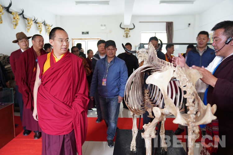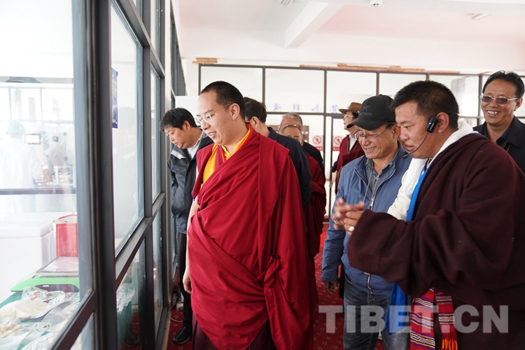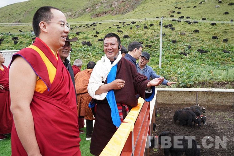 在調(diào)研中,十一世班禪關(guān)心的問題得到了很好的解答,他頻頻點頭表示贊許。從娘亞牦牛原種場了解到養(yǎng)殖基地的建成運營情況后,十一世班禪立刻趕往公司加工車間和銷售店,觀摩酥油、奶制品制作過程,了解銷售、帶動牧民增收情況。十一世班禪希望公司能夠?qū)⒓卫璧淖匀粴夂?、土地條件等實際情況與科學(xué)實驗相結(jié)合,樹立好家鄉(xiāng)民族特色品牌,為草原生態(tài)保護和畜牧業(yè)發(fā)展探索經(jīng)驗。