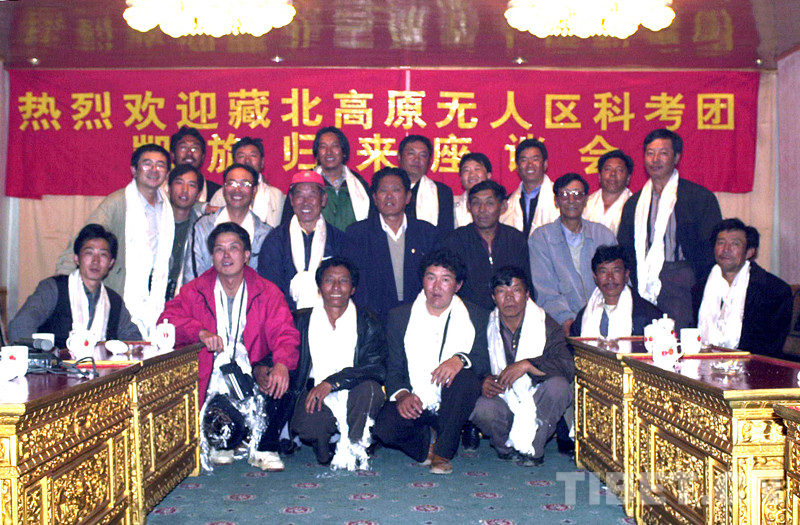 這是藏北高原無(wú)人區(qū)科考團(tuán)人員,在完成2001年科考任務(wù)返回拉薩后合影留念(唐召明提供,2001年攝)