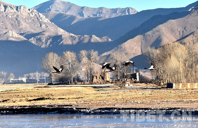 圖為黑頸鶴在雅魯藏布江中游河谷地帶越冬(資料圖) 攝影:王媛媛